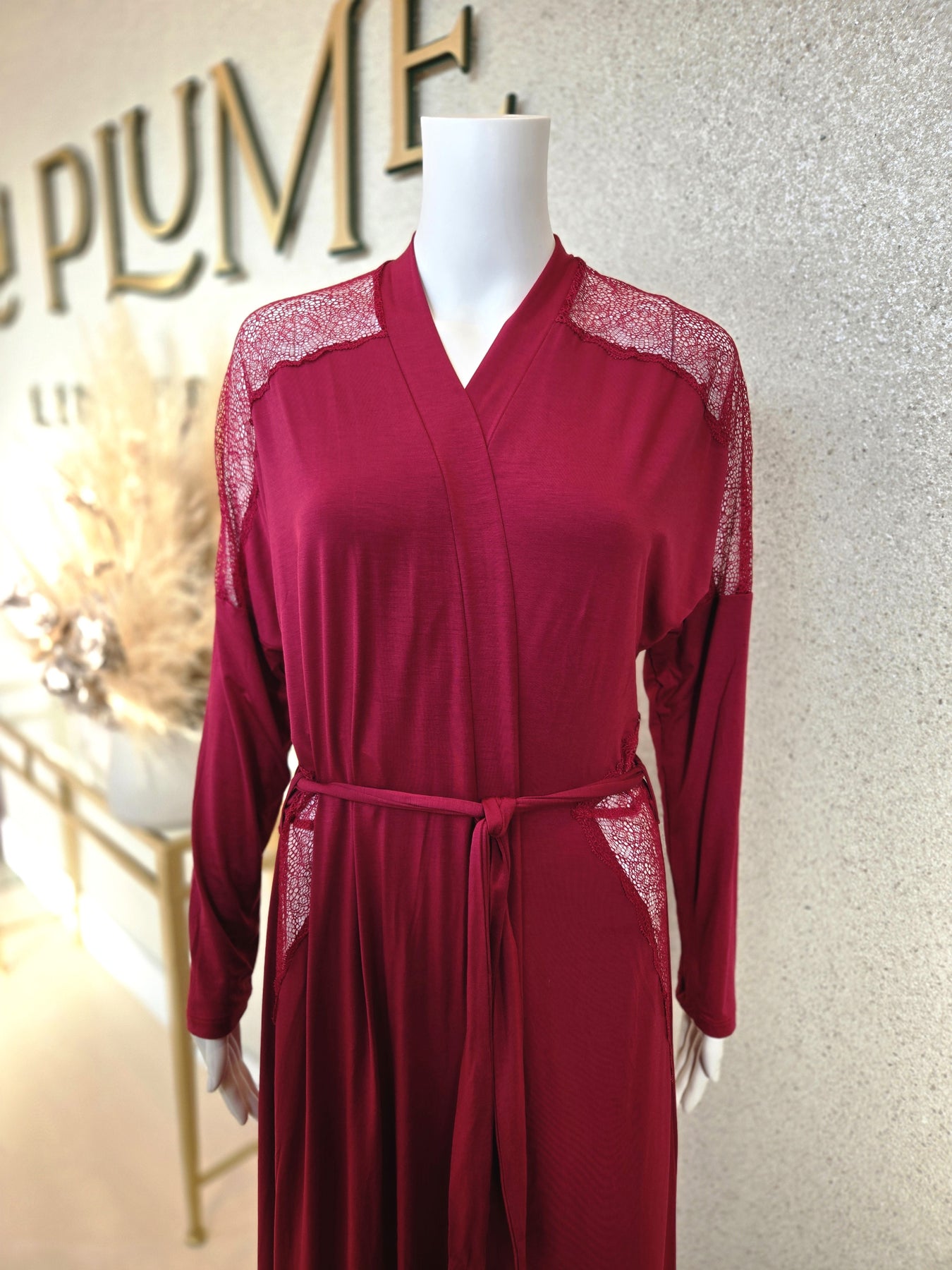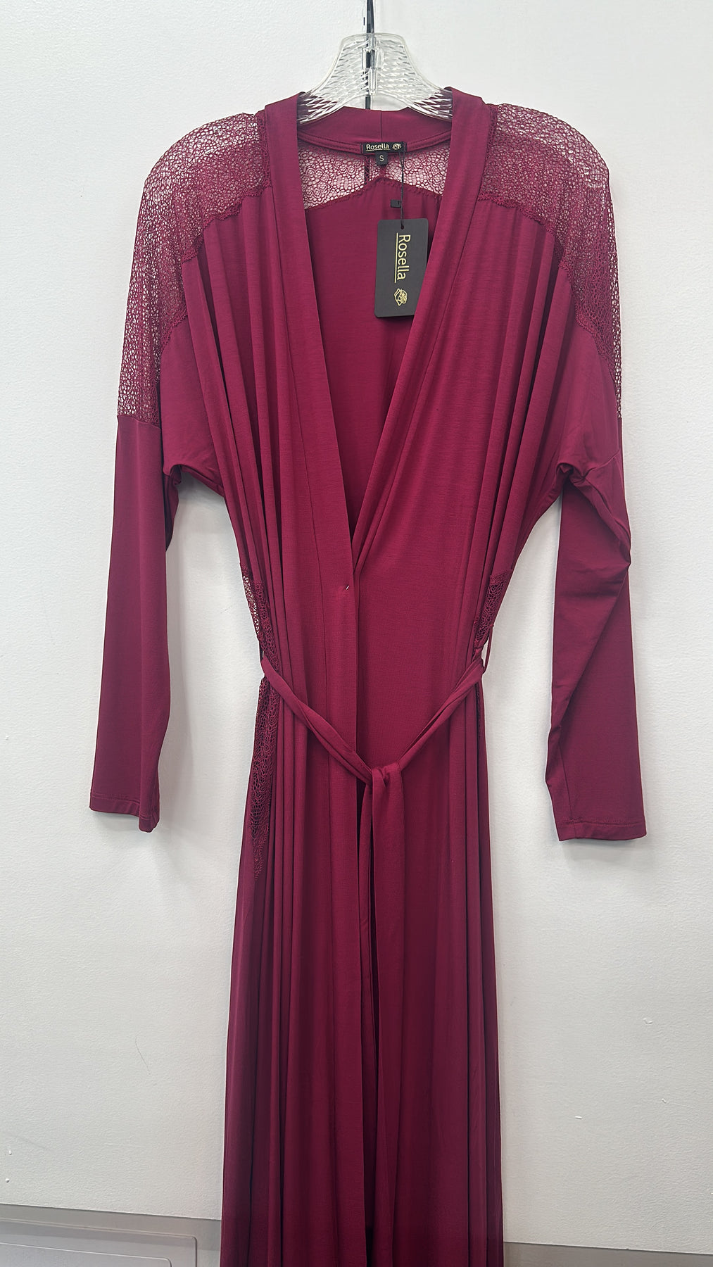 Rosella , Gorgeous morning robe with sheer lace at shoulders and sleeve.