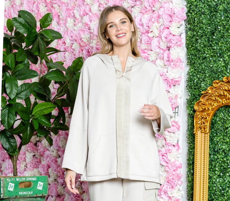 John Apparel Kari Pointe Knit Hoodie Jacket.