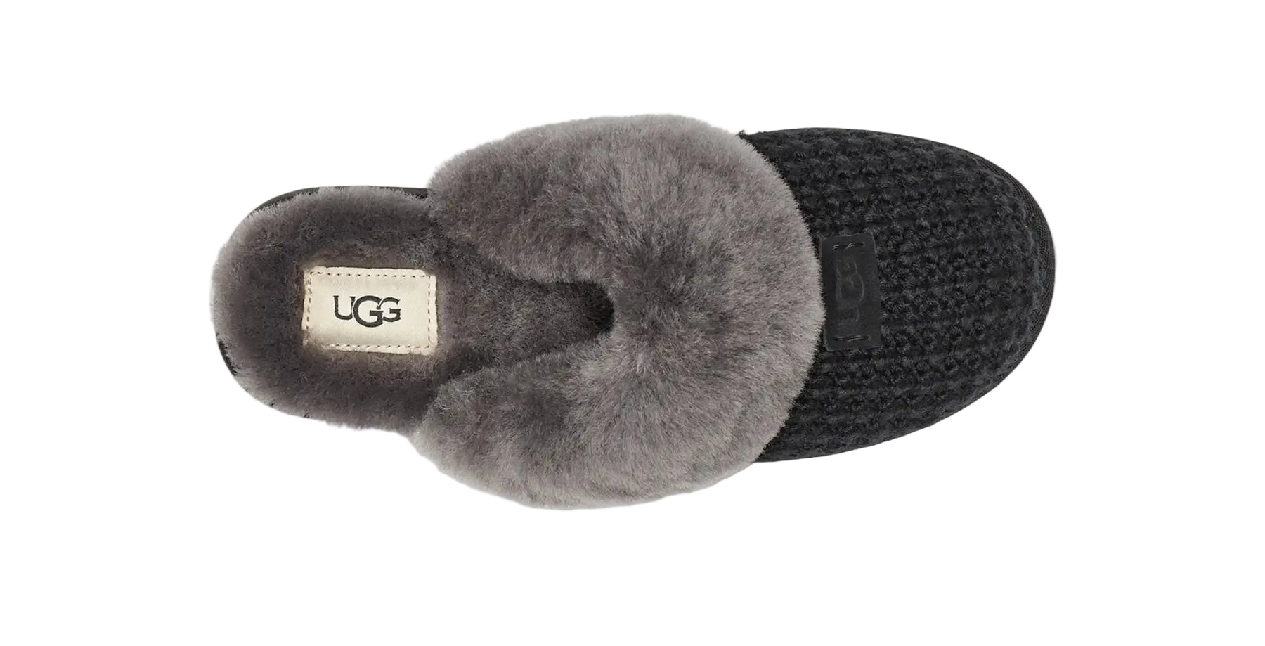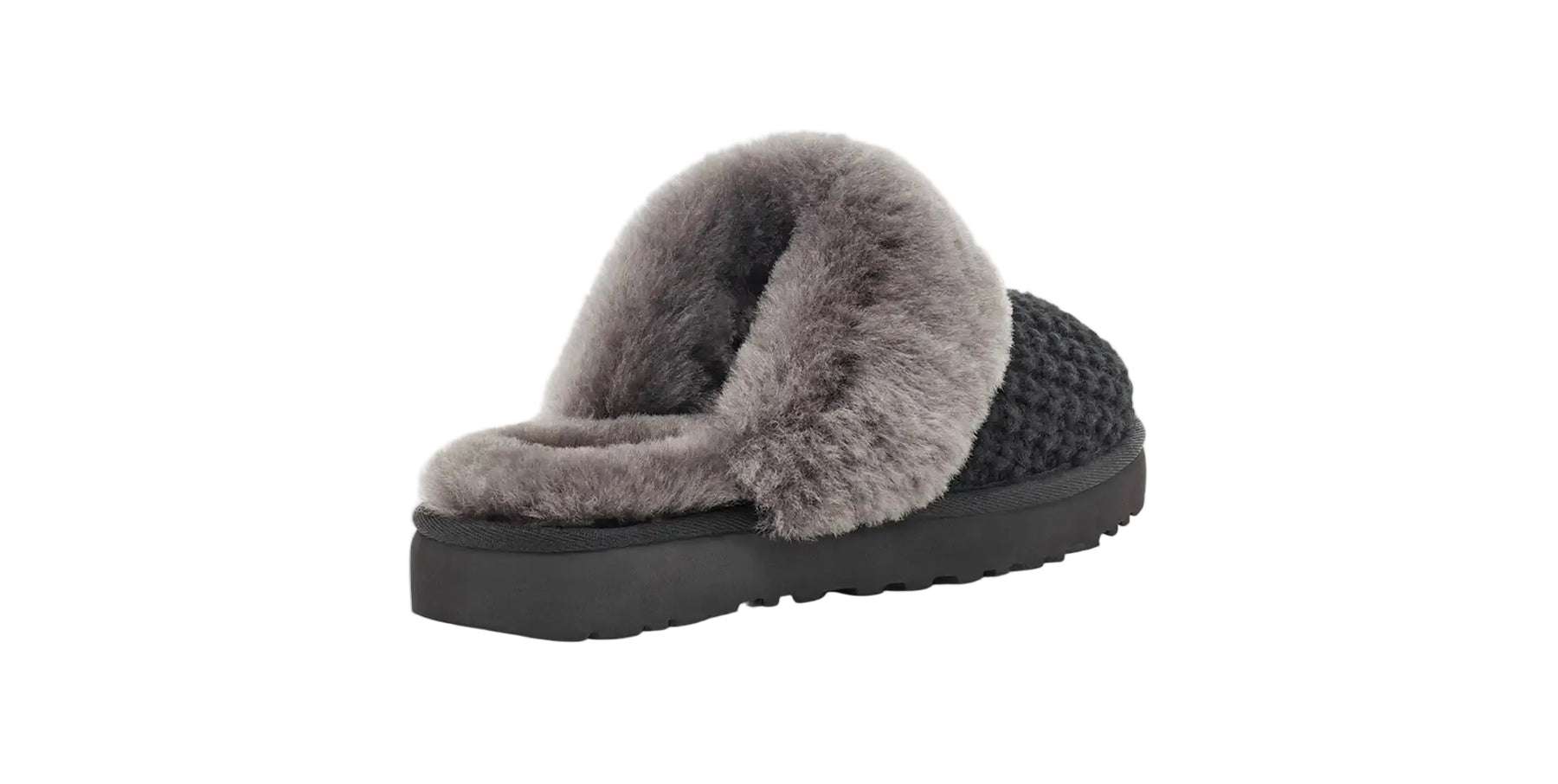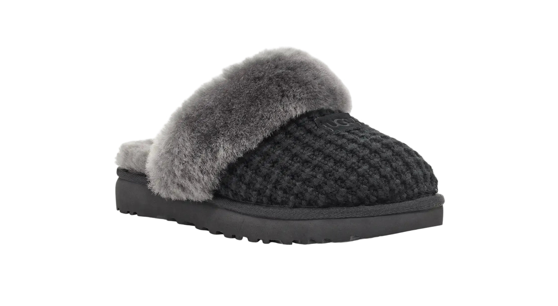 Slip into cozy comfort with the UGG Cozy Slipper, crafted to keep your feet warm and relaxed at home. Featuring a soft knit upper and plush UGG® wool lining, these Black slippers offer a snug fit with a touch of casual style—perfect for lounging or gifting.