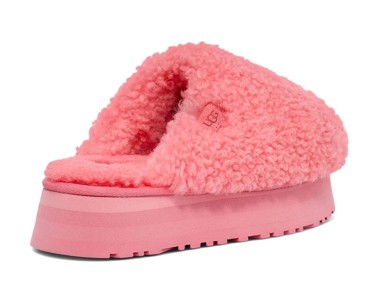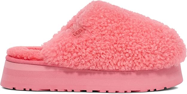 Standout comfort and playful style with the UGG Maxi Curly Platform Slipper in Pink Jasmine. Featuring a curly sheepskin upper and soft UGGplush™ wool‑blend lining, these elevated slippers combine cozy warmth with a bold 2‑inch platform sole for a fun, leg‑lengthening boost. The Pink Jasmine hue adds a soft, feminine pop of color—perfect for lounging at home or gifting to someone special.
