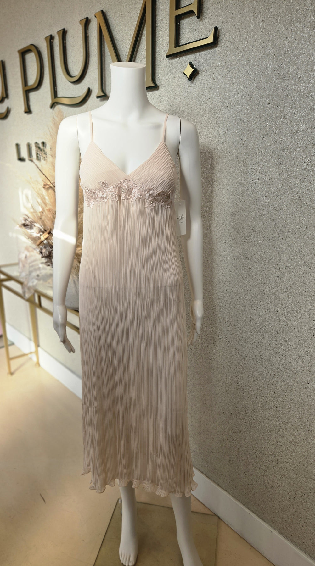 Rya Collection, Super feminine nightgown chemise with fine pleat and flower embroidery design.