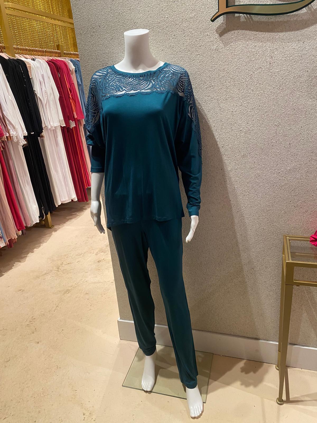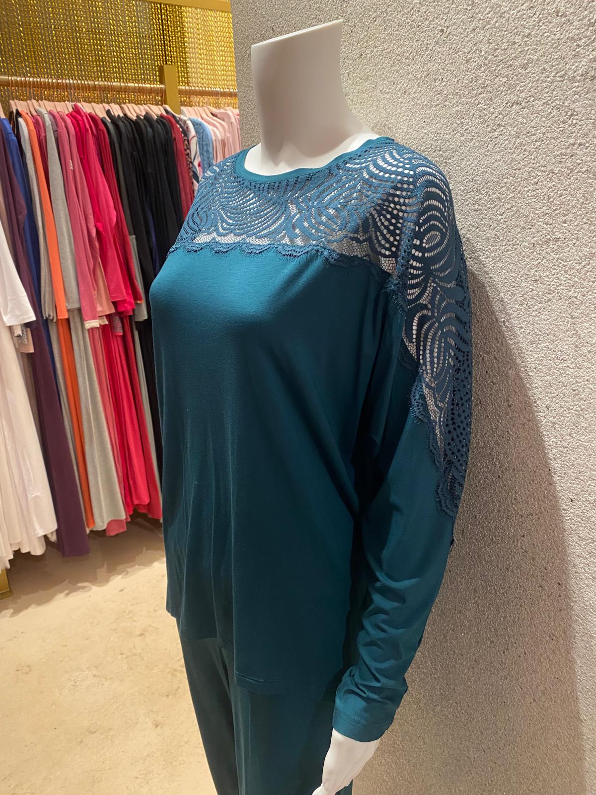 Sheer top Lounge Set, Bottlegreen 88