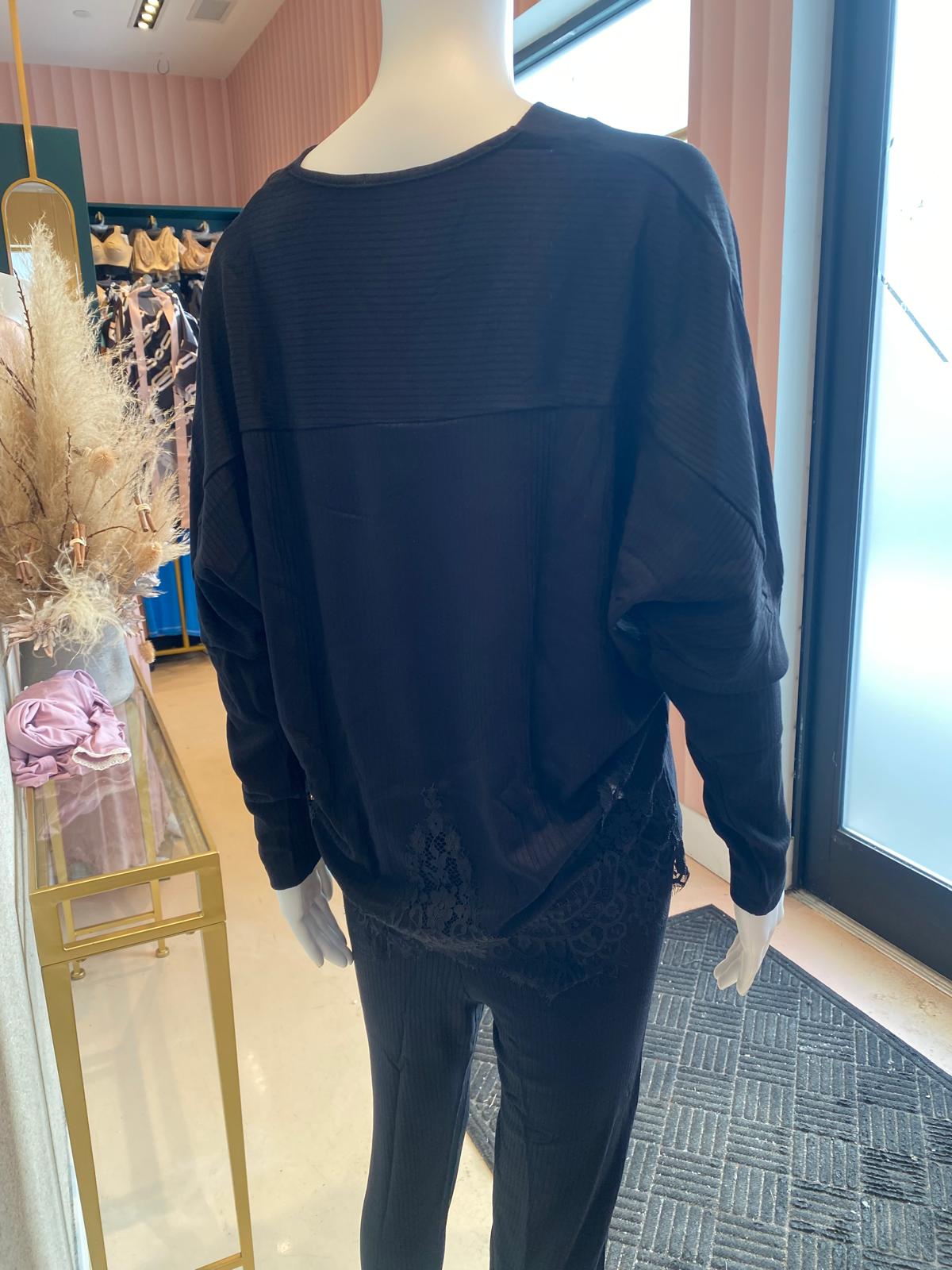 Luxuriously soft and undeniably feminine, the Opera long pajama set from Oh! Zuza wraps you in a ribbed knit that’s both breathable and flattering. Black hand-cut lace accents the V-neck blouse with kimono sleeves, creating a sensual yet comfortable ensemble perfect for evenings in or relaxed mornings at home. Made with thoughtful craftsmanship and premium materials, it’s an elegant addition to any nightwear wardrobe.