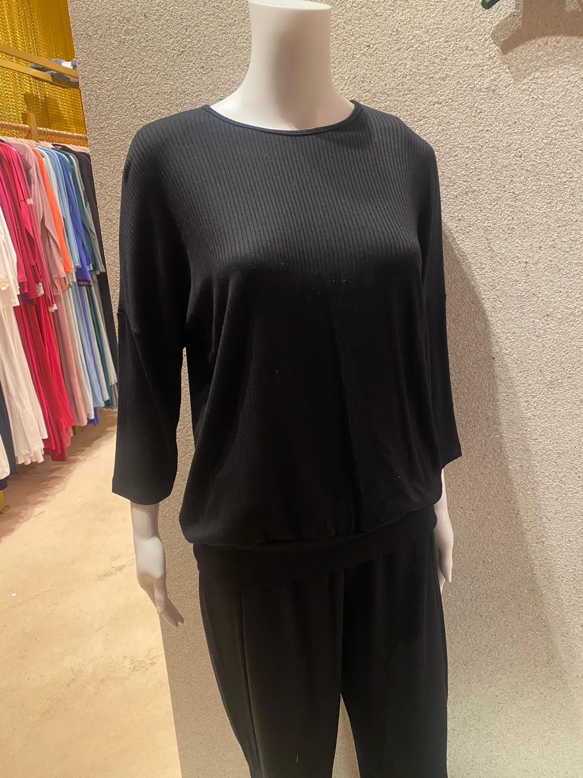 OZ214 Pyjamas Ribbed Fabric Kosher Neck, Black