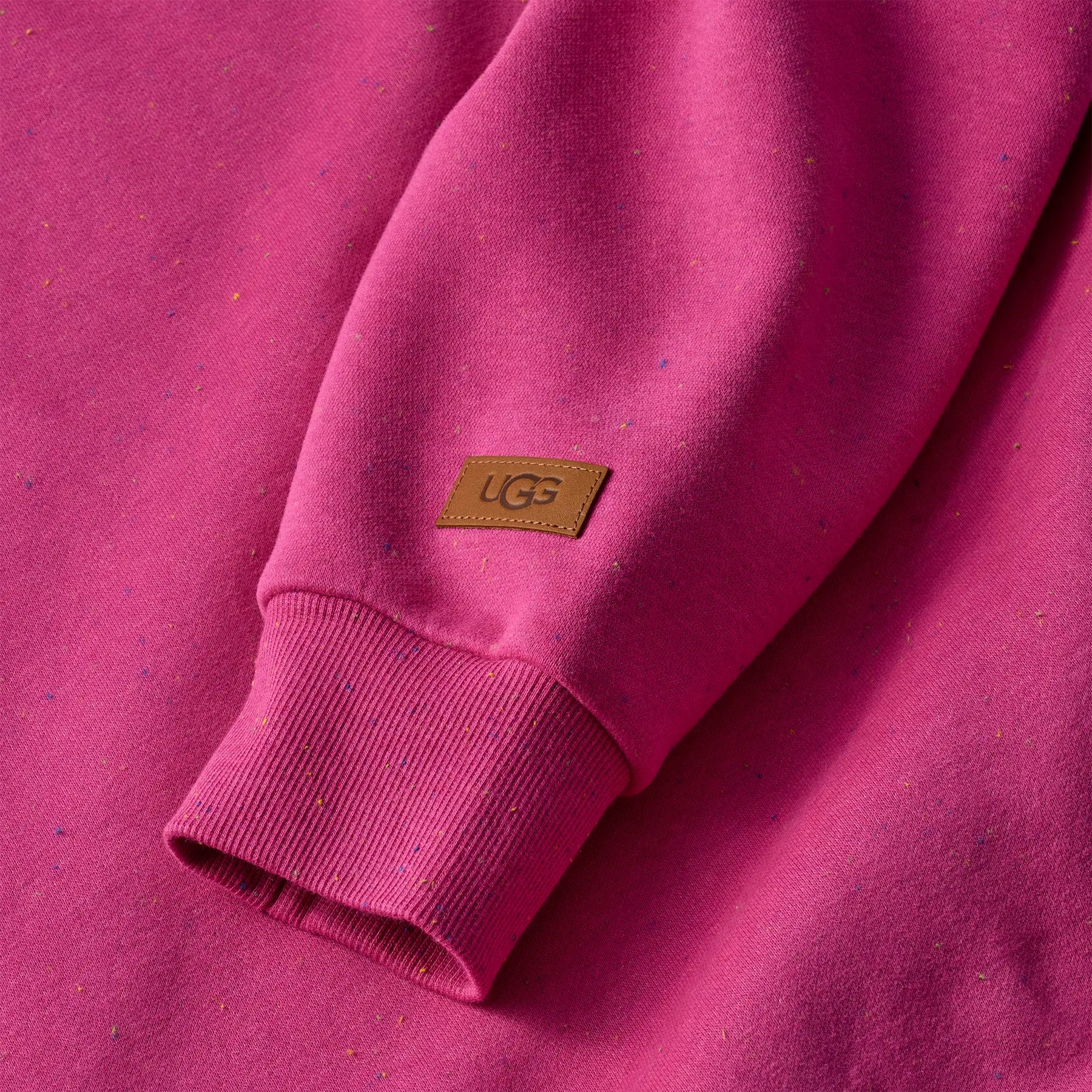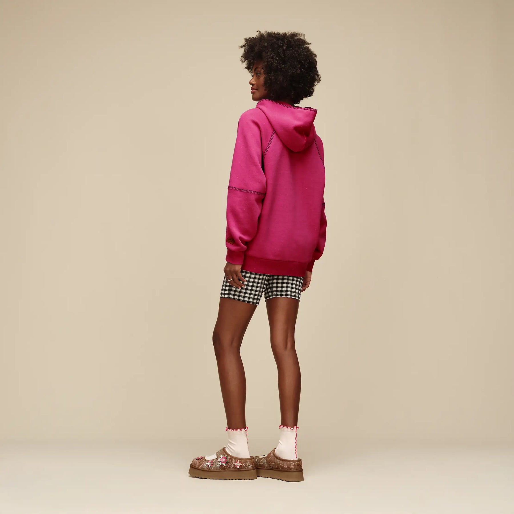 • Features: Overlapping neckline, whipstitch seam details, side seam pockets, hooded design, UGG® leather logo label