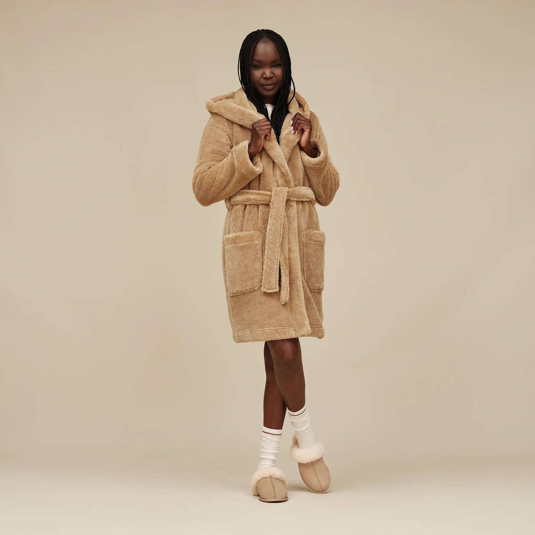 • Hooded sherpa robe