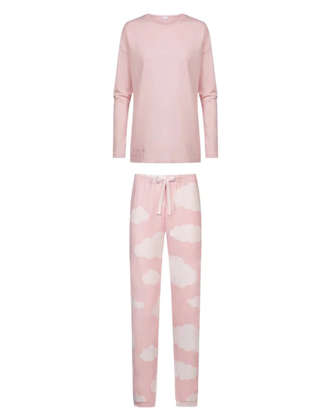 Mey, Luxurious soft and cozy cotton Pj set wit cloud print bottoms design.