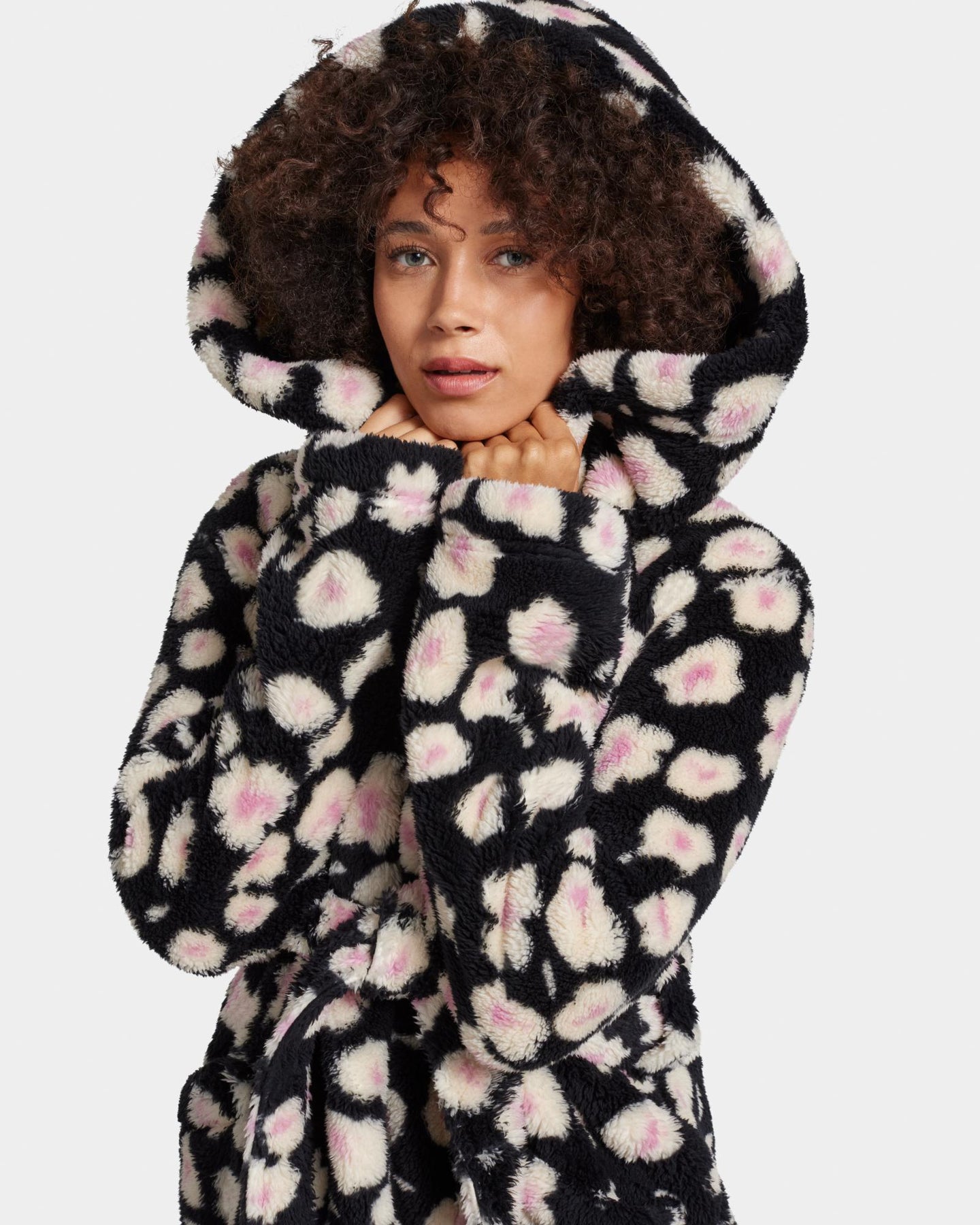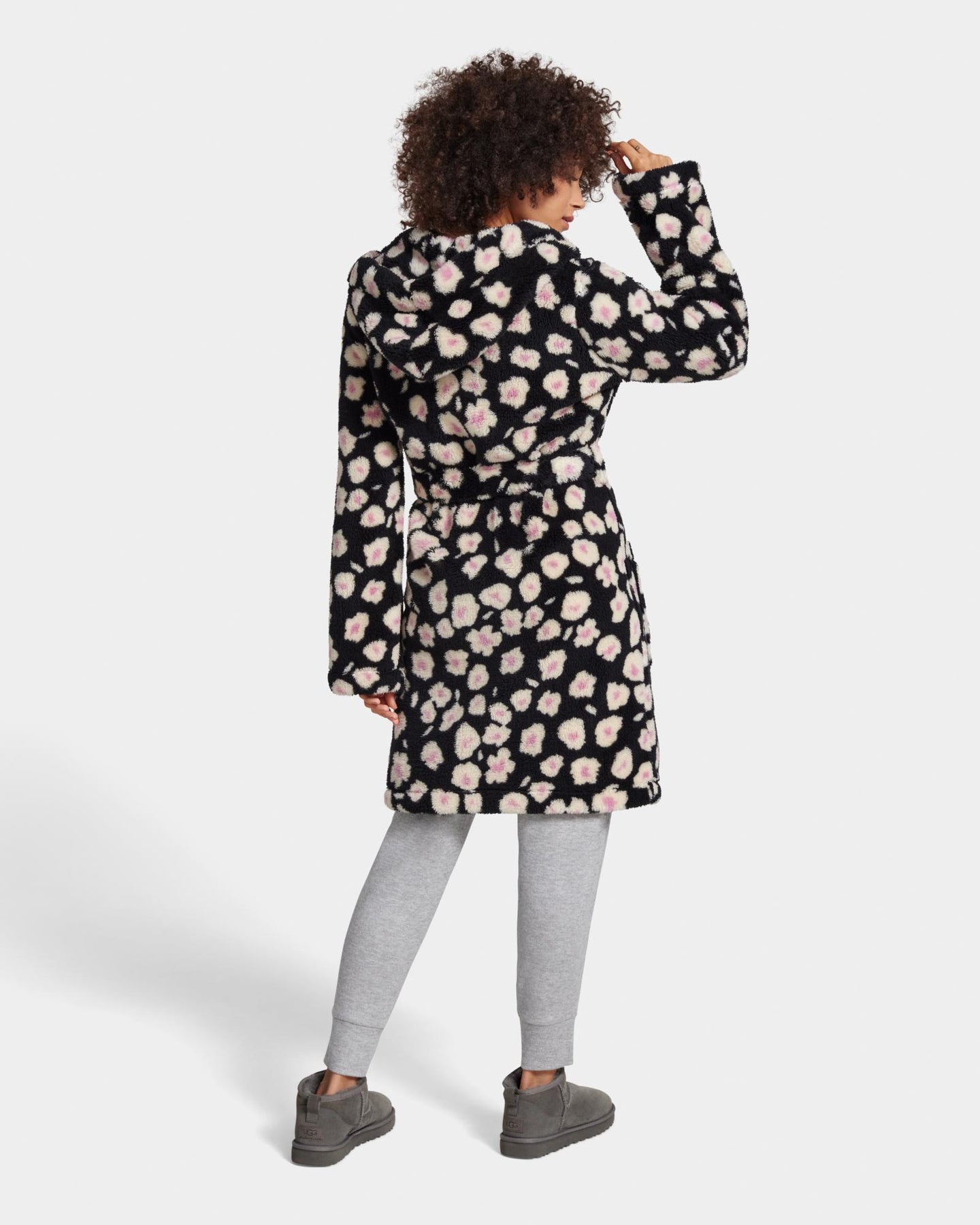 UGG Aarti Print. Made of plush sherpa, the Aarti Robe offers a layer of cozy warmth for chilly mornings. Featuring front patch pockets and a self-belt, it pairs perfectly with loungewear essentials and your favorite slippers.