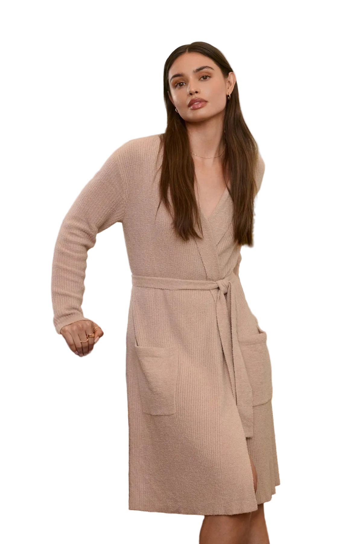 Barefoot Dreams perfected the CozyChic Lite® Ribbed Robe with a fold-back shawl collar that can be styled open or wrapped for extra coverage. Designed with a center back channel to secure the removable belt, it stays smooth and polished with no bunching. Lightweight, ultra-soft, and effortlessly chic, it’s ideal for everyday lounging or gifting.