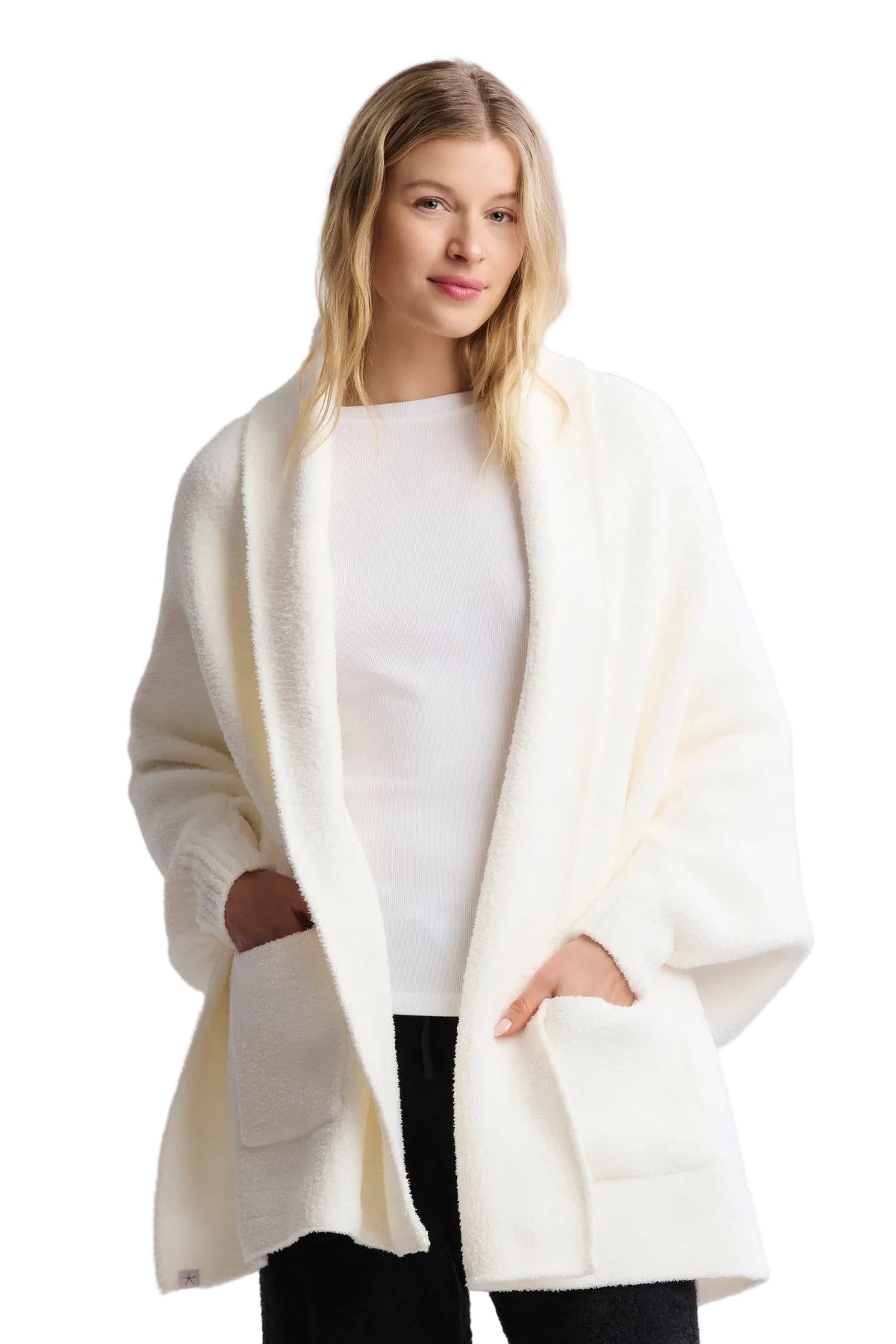 Wrap yourself in pure softness and effortless comfort — this oversized blanket-wrap is the perfect cozy treat for chilly mornings, lazy afternoons, or quiet evenings in. Its plush knit drapes beautifully, adding a little luxe to lounging at home or to a relaxing night in with someone special.