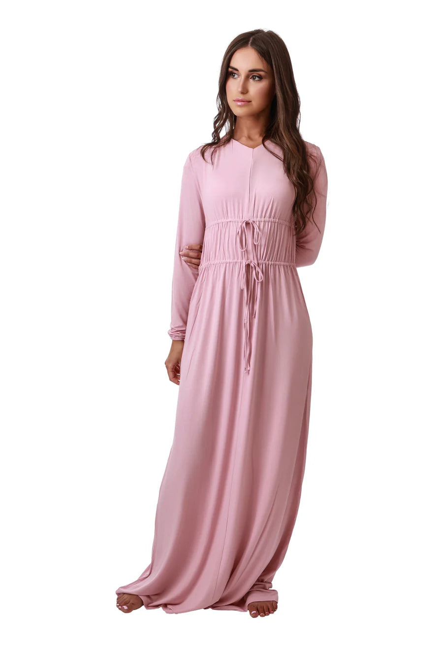 Flowing and feminine, the Stella Nightgown is a timeless sleepwear piece designed for comfort and effortless elegance. Featuring a soft pink hue and a flattering tie-waist detail, this maxi length nightgown drapes beautifully for relaxed evenings or dreamy honeymoon moments. Crafted with Rojo London’s signature focus on quality and comfort, it’s a pretty, luxe option for everyday wear or special gifting.